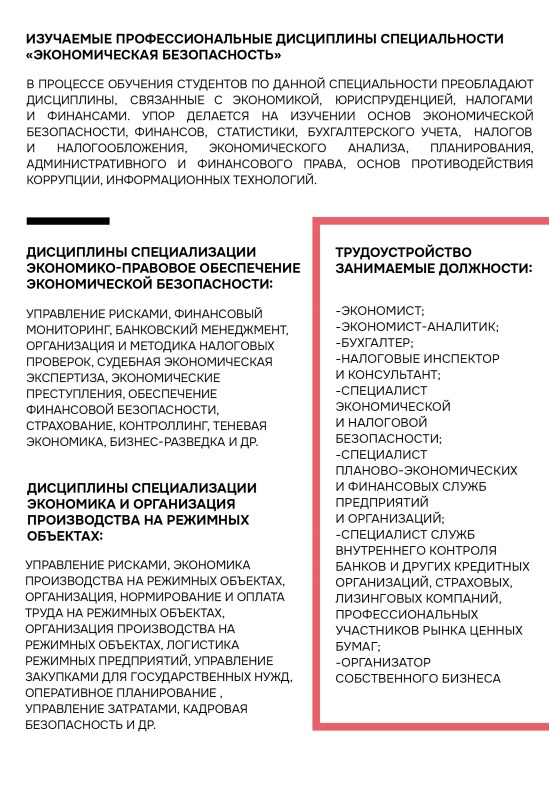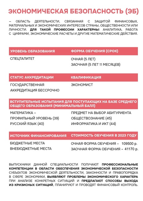 Кафедра экономической безопасности осуществляет в  2024 году набор на  очную и заочную форму обучения по специальности "Экономическая безопасность"
