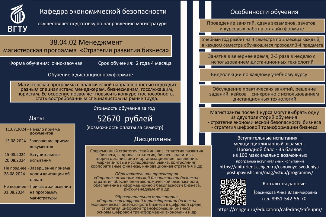 В 2024 году кафедра экономическая безопасности объявляет набор на магистрерскую программу в дистанционной форме обучения
