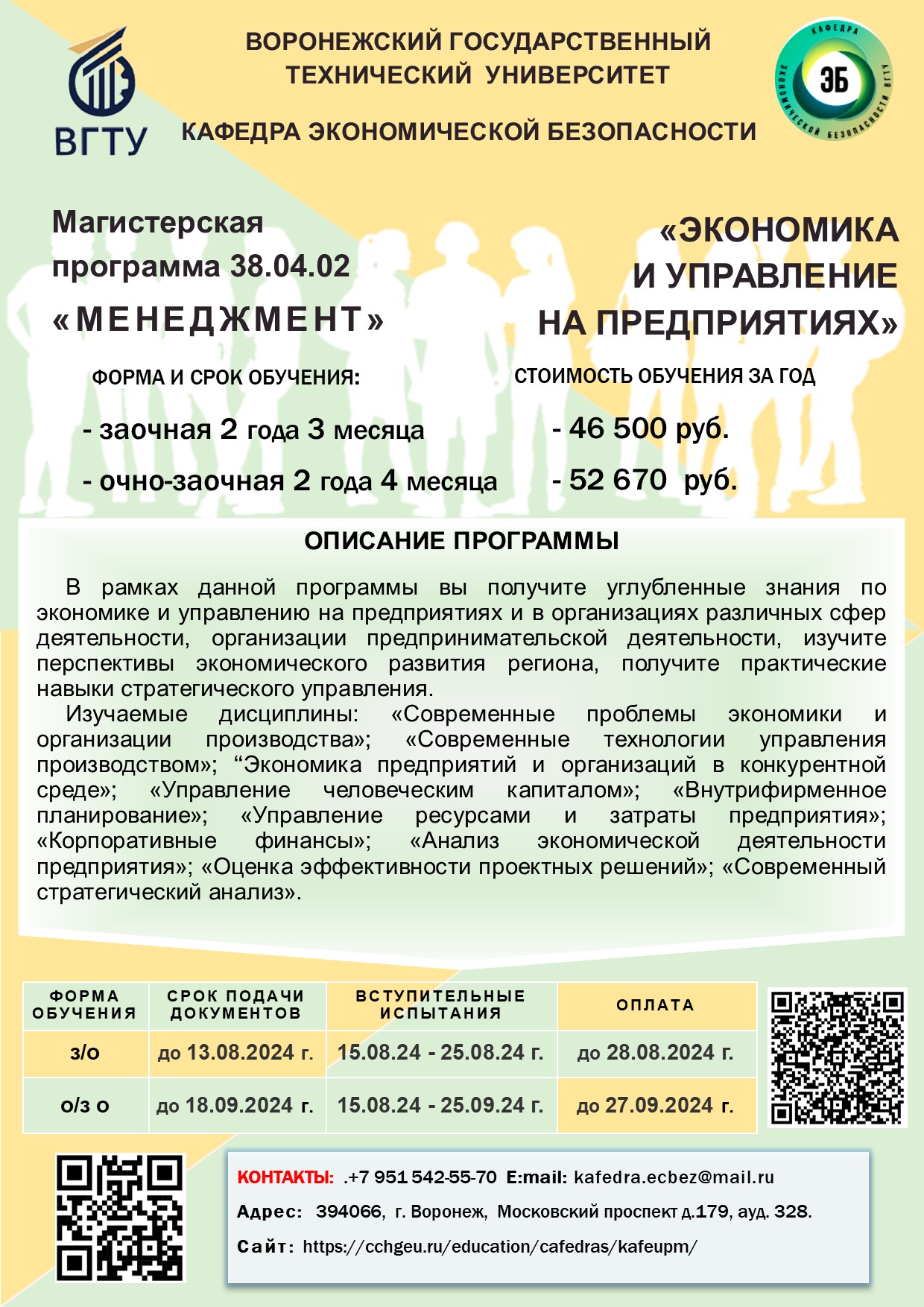 В 2024 году кафедра экономическая безопасности объявляет набор на магистрерские программы в очной, очно-заочной и заочной формах обучения