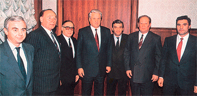 Совещание ректоров ведущих вузов России с участием Президента РФ Б.Н. Ельцина по реформе образования в России. Москва, Кремль, 1992 г. По правую руку от президента - ректор ВПИ В.Н. Фролов. |