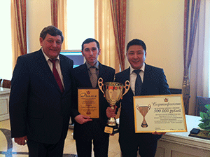 | Губернатор Алексей Гордеев вручил ректору ВГТУ Владимиру Петренко сертификат на получение гранта и символический кубок | Поздравление призера ежегодного межвузовского конкурса инновационных проектов "Кубок инноваций" Хвана Александра Дмитриевича, доцента кафедры "Теоретическая и прикладная механика" ВГТУ, занявшего 2-е место за проект "Разработка инновационных технологий предварительной термомеханической обработки для повышения стойкости режущих и мерительных инструментов" |