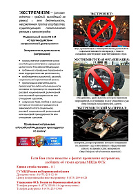 Если Вам стало известно о фактах проявления экстремизма, сообщите об этом в органы МВД и ФСБ.